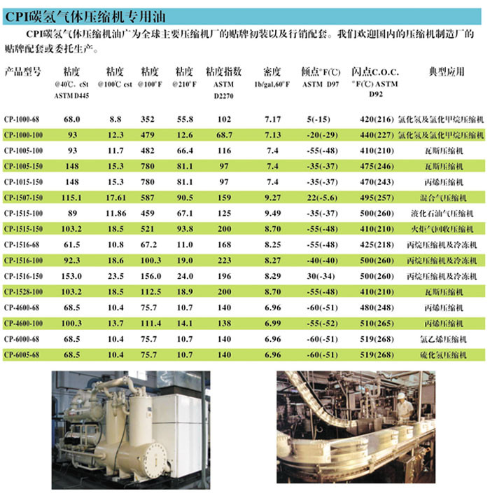 CPI-4100-32/CP-4100-32 系列產(chǎn)品是基于雙酯類合成基礎油調(diào)制而成的高品質(zhì)的合成壓縮機油,它可提供極好的抗氧氣性和熱穩(wěn)定性。